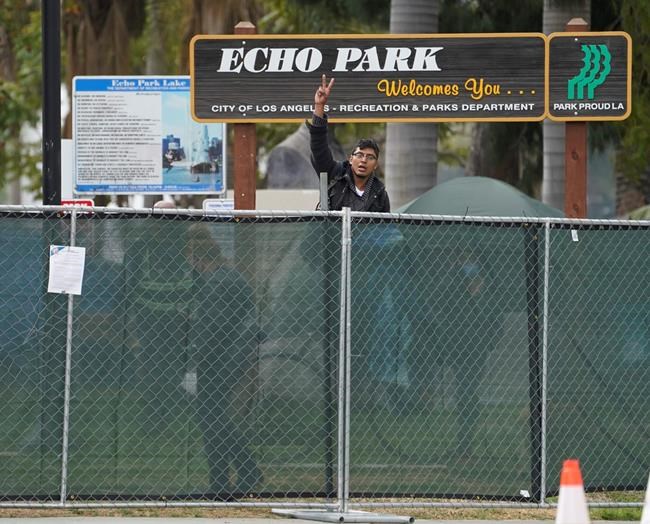 LOS ANGELES – A newly installed fence surrounded a popular Los Angeles park Thursday after authorities moved in to evict residents of a large homeless encampment despite protests by the people who live there and their supporters.