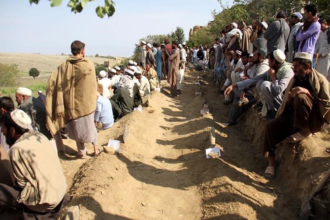 KABUL – Hundreds of villagers attended the funerals held Saturday in eastern Afghanistan for the victims of a deadly bomb that killed 66 people during prayers at a local mosque.