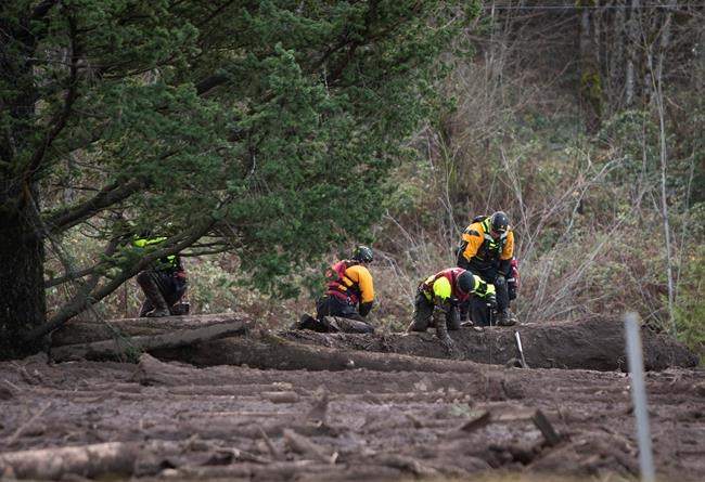 PORTLAND, Ore. – Searchers used inflatable yellow rafts and drove metal poles into deep mud Thursday as they searched for a woman who was swept away by a landslide in Oregon during a powerful winter storm.
