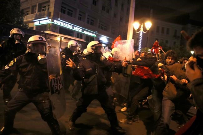 The violence broke out as youths in motorcycle helmets and gas masks, armed with wooden clubs and petrol bombs, tried to break a police cordon. Rioters retired to the Athens Polytechnic university complex in the city centre, site of a 1973 student uprising, and engaged in running street fights with police.