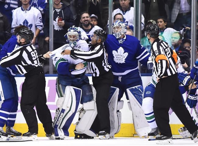 TORONTO – For the Maple Leafs it was a third straight win, for the Canucks an eighth straight defeat. Saturday evening in Toronto will be defined, however, primarily by the fireworks that consumed the third period.