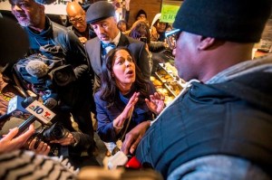 The demonstrators stood by the counter chanting slogans like “Starbucks coffee is anti-black.”