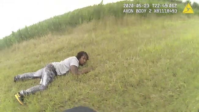 Jacob Brown, Dakota DeMoss and George “Kam” Harper, who are white, were seen on body-camera video piling onto Harris following a high-speed chase that ended next to a cornfield in rural Franklin Parish, kneeing, slapping and punching him even though he had surrendered face down with his arms and legs splayed.