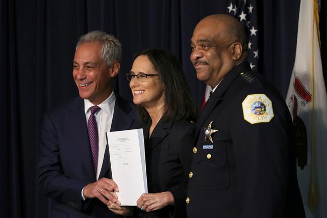 He spoke at a joint news conference with Attorney General Lisa Madigan and Police Superintendent Eddie Johnson — the three posing for pictures as Madigan held up what would be a court-enforced plan, called a consent decree.