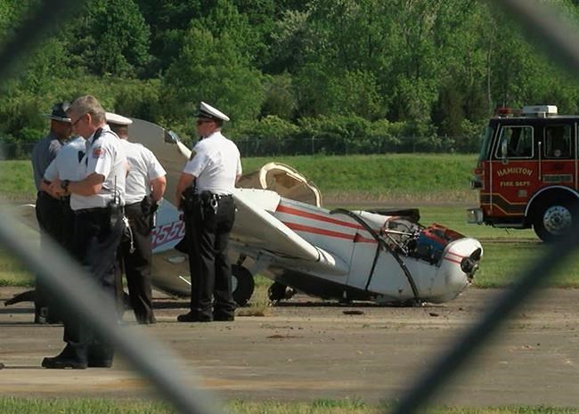 Hamilton Fire Chief Mark Mercer says the plane’s engine quit during takeoff and the pilot wasn’t able to land on the runway. Mercer said the pilot was conscious afterward but didn’t know the extent of his injuries.