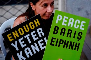 “We say, ‘No. Stop. We don’t need war,’” said 23-year-old artist Felix Ngobo. “We say, ‘It doesn’t matter if you’re Christian or Muslim.’ We are all the same.”