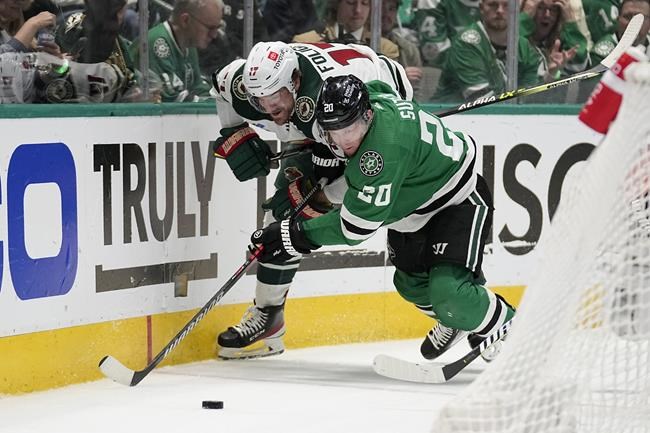 DALLAS (AP) — Roope Hintz had a goal in each period, getting his first career hat trick by scoring three different ways, as the Dallas Stars stepped up without Joe Pavelski to get even in their first-round series against the Minnesota Wild.