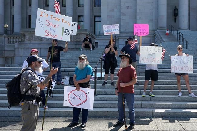 Protestors gathered in Olympia, Washington, when Gov. Jay Inslee, a Democrat, announced teachers would have until Oct. 18 to be fully vaccinated or face firing. A protest on Saturday attracted hundreds of state employees, from ferry workers to teachers, who rallied against the vaccine mandate.