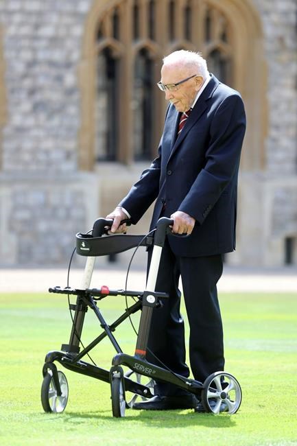 Moore captivated the British public by walking 100 laps of his garden in England and raising some 33 million pounds ($40 million) for the National Health Service in April. The queen knighted him with the traditional sword tap, but the World War II was not required to take a knee before the monarch.