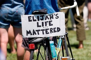 Protesters say they should not be blamed for the violence in the area. People continued to add artwork, flowers and candles at a memorial for the 16-year-old on Tuesday.