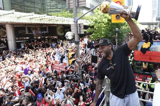 Canadian tennis player Denis Shapovalov, who grew up in nearby Richmond Hill, Ont., tweeted: “Welcome home Kawhi. Thanks for everything.”