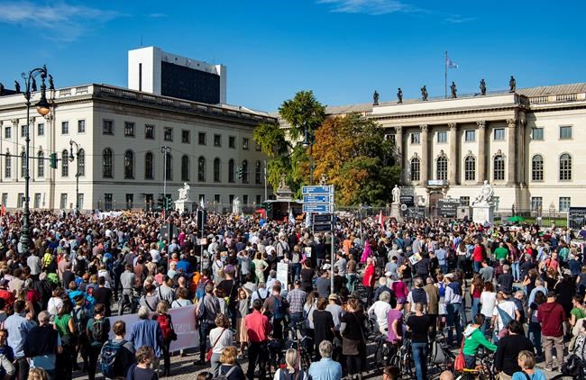 About 10,000 people participated in the march through the German capital. Several thousand others protested Saturday in other cities including Hamburg and Marburg.