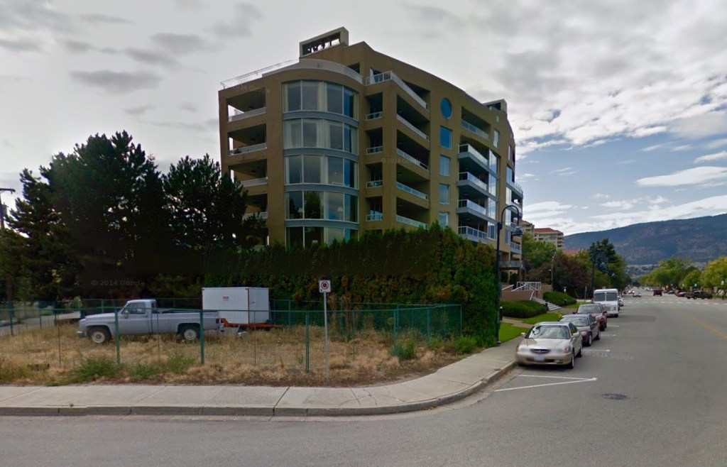 PENTICTON – A small, vacant corner lot on Lakeshore Drive, which has not seen any activity since the 1980s, could be the site of a a high-end condominium complex following Penticton city council approval of a development permit.
