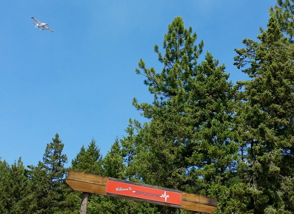 Kevin Bennett with Zipzone Peachland says their ziplines were unaffected by today’s fire. He says his guests had a ringside seat as Wildfire Management plans zipped overhead.