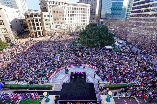 Harris, a first-term U.S. senator from California who announced her candidacy last Monday, rallied thousands of supporters at the Frank Ogawa Plaza in Oakland, her hometown and where she served as a prosecutor before becoming the state attorney general.