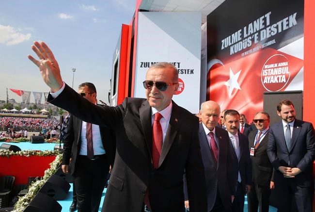 Erdogan, along with the Palestinian prime minister, was speaking to hundreds of thousands waving Palestinian and Turkish flags at an Istanbul rally dubbed “Curse Oppression, Support Jerusalem.” He told the rally that the responsibility to defend Jerusalem lay with them as crowds chanted “Chief, take us to Jerusalem.”