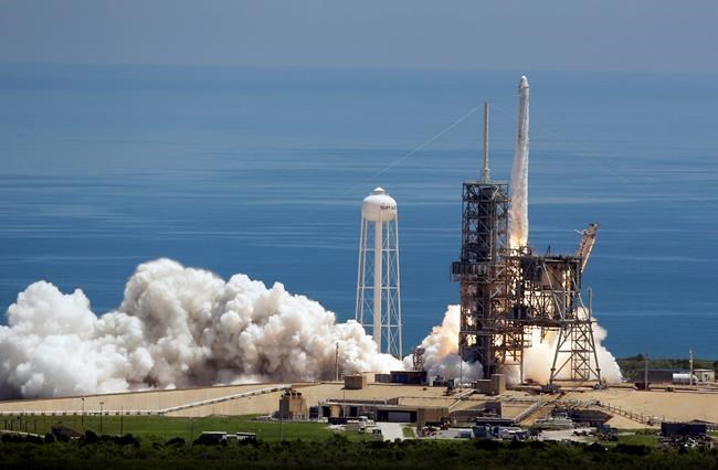 The space station was zooming 250 miles above the Atlantic, just off Nova Scotia, when the Falcon took flight.