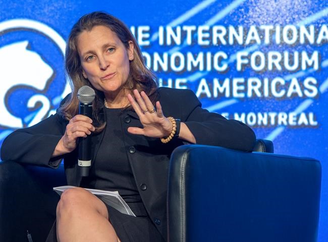 MONTREAL – Foreign Affairs Minister Chrystia Freeland says she will speak out about the lack of media freedom in Russia during aconference that Canada is co-hosting next month with Great Britain.