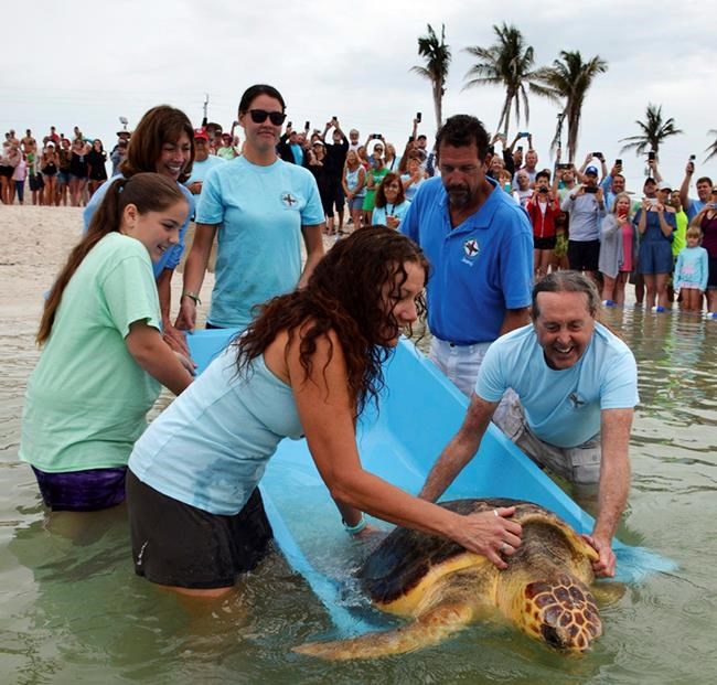 Turtle Hospital officials said that releasing the reptile over Mother’s Day weekend was especially meaningful because they are confident the turtle will lay eggs after reaching maturity.