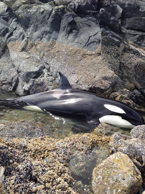 Hermann Meuter, who runs a whale research facility near Hartley Bay, said another researcher was watching whales hunting seals Wednesday and noticed that a female orca was stranded.