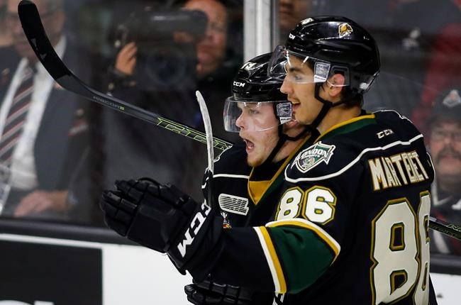 Tkachuk doubled London’s lead with another power-play goal with 2:17 left in the first. Tkachuk, the son of former NHLer Keith Tkachuk, was standing at the top of the crease and deflected an Olli Juolevi shot past Marchand.