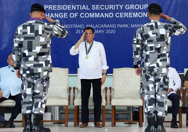 The brash Philippine leader has often criticized U.S. security policies while praising China and Russia since taking office in mid-2016 for a six-year term.