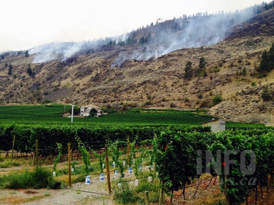 The wildfires broke out yesterday, Aug. 14, and grew quickly thanks to high winds pushing the flames through grass, sage and open timber, forcing the evacuation of 360 homes, and threatening farms and wineries.