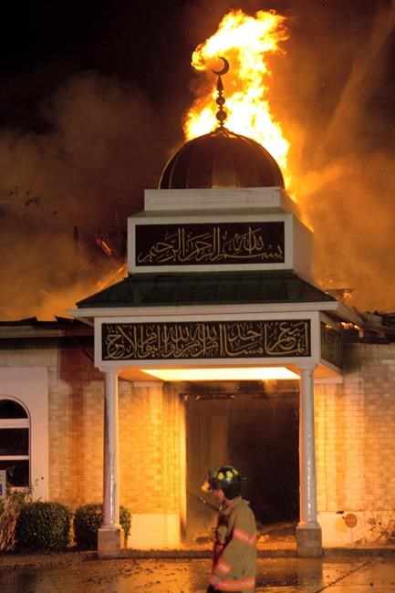 “It’s sad to stand there and watch it collapse down, and the fire was so huge,” Shahid Hashmi, the Islamic centre’s president, said. “It looks completely destroyed.”