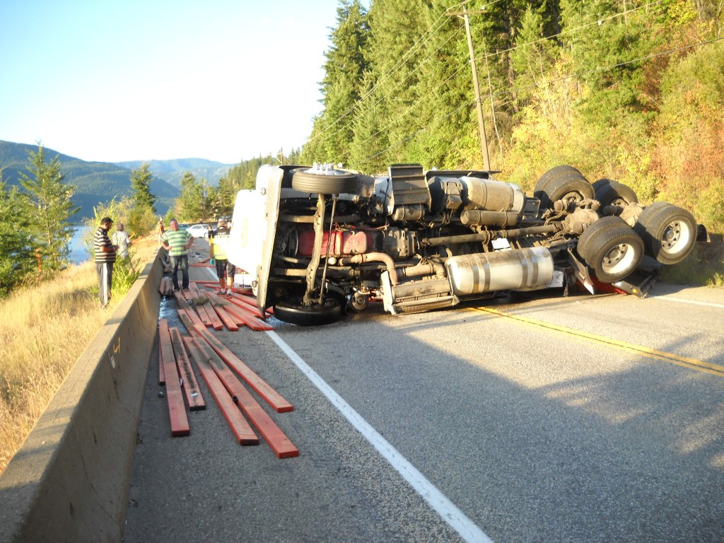 Witnesses saw the driver make a left turn when the truck’s load of lumber shifted and caused the vehicle to flip, RCMP Const. Valerie Guillaume says in the release.