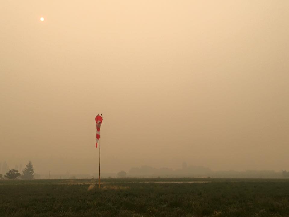 OLIVER – With visibility down to less than a kilometre at times, B.C. Wildfire won’t be using any air tankers or helicopters in the fight against the wildfire near Oliver.
