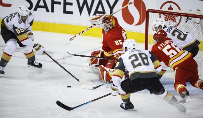 CALGARY – Mikael Backlund had a goal and three assists to pace the offence and Jacob Markstrom made 28 saves to lead the Calgary Flames to a 6-0 victory on Wednesday night over the Vegas Golden Knights.