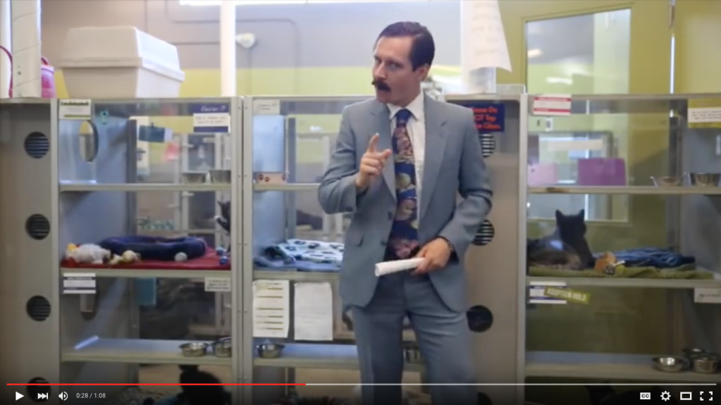 The Calgary Humane Society did just that, getting an actor to help them spread the word out their low mileage, pre-owned cats.