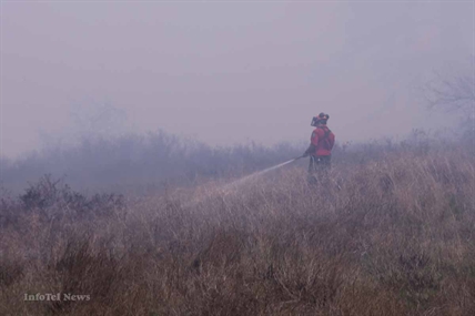 Located about 700 feet up a slope, getting up to the scene was a challenge for firefighters, Cummings says. With no vehicle access, firefighters had to climb up to the fire, dragging hose lines with them.