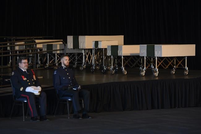 HALIFAX – One by one, seven small white caskets were carried inside a cavernous waterfront hall on Saturday, where thousands of mourners gathered for an emotional embrace of grieving parents who lost their children in a devastating house fire.