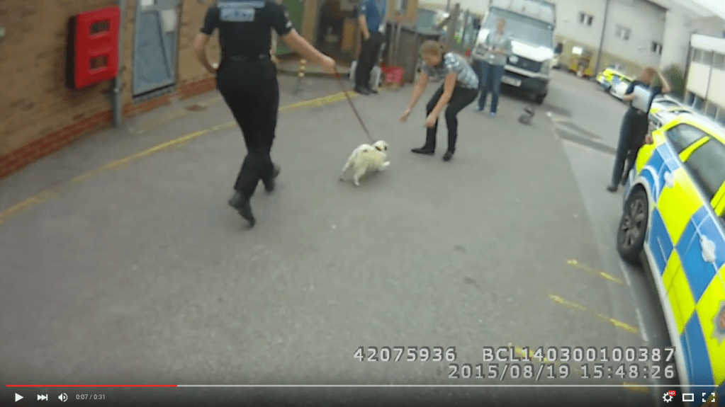 The dog-nappers were caught by Essex Police in England and the clip shows one of the stolen dogs returned to its owner.