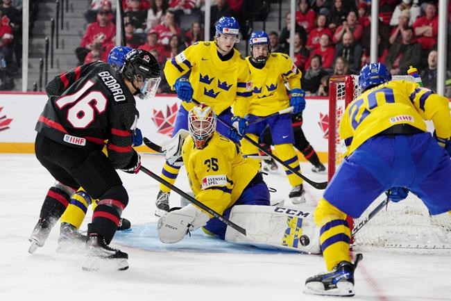 Joshua Roy, Tyson Hinds and Kevin Korchinski had the other goals for the Canadians, who scored three times in the opening 12 minutes to put Sweden on the ropes early. Thomas Milic made 22 saves.