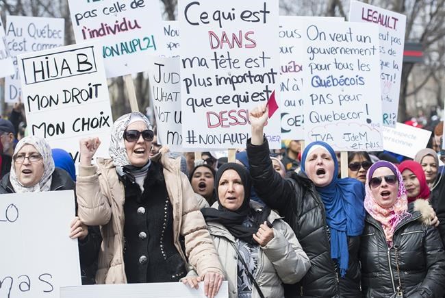 On Sunday, he called on Quebecers to reject the bill, which he said aims to tell Muslim women how to dress and where to work.
