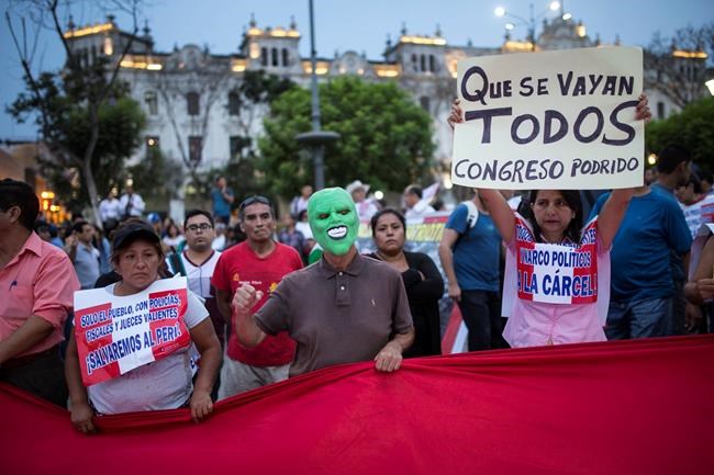 Several thousand protesters gathered in Peru’s capital say they are outraged not just at Peruvian President Pedro Pablo Kuczynski but all of congress, which is debating whether to accept the leaders offer to resign amid allegations of wrongdoing.