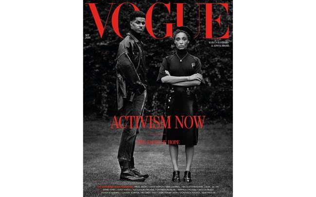 The cover features 22-year-old Manchester United soccer star Marcus Rashford, who in June successfully campaigned to force Britain’s government to grant free food vouchers to poor families during the summer holidays. He posed alongside model and mental health activist Adwoa Aboah. They were photographed by Misan Harriman, the first Black photographer tasked with shooting the magazine’s September issue — traditionally seen as the most important one in the Vogue calendar.