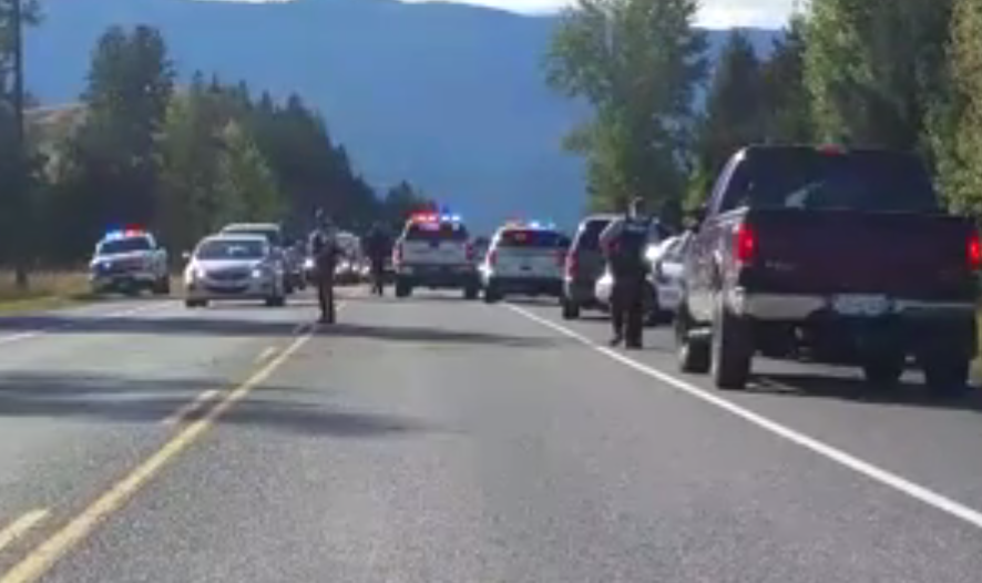 Both lanes of traffic in either direction on Highway 97 were closed while the suspects were apprehended.