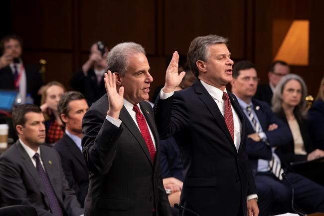 At the same hearing, FBI Director Christopher Wray says mistakes made by employees and cited in the report “do not define” the agency as a whole.