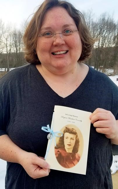 The sisters — Renee in Quincy, Massachusetts, and Julie in Port Matilda, Pennsylvania — wrote the story of how Regina met her husband on a blind date, then lost him when he died in 2010 after 64 years of marriage. They wrote of how she spent most of her teen years caring for her two brothers after their mother died suddenly when she was 13. They included rosaries with each of the 32 booklets they mailed.
