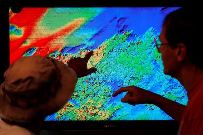 Sanctuary research co-ordinator Kimberly Roberson and other scientists prepare to dive to collect data about what fish can be found in the area, while Craig Aumack, an assistant professor of biology at Georgia Southern University, peers through a microscope at algae.
