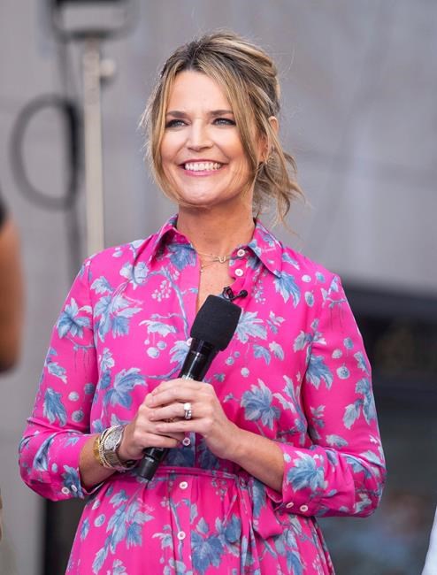 NEW YORK – Working at home on Wednesday was a little more involved than a laptop and cellphone for “Today” show host Savannah Guthrie.