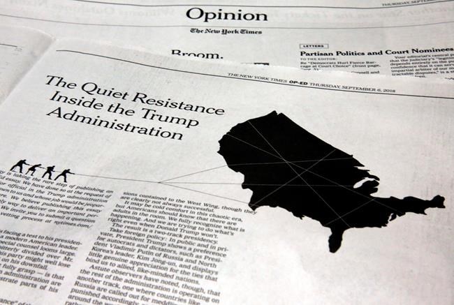NEW YORK – The coup of publishing a column by an anonymous Trump administration official bashing the boss could backfire on The New York Times if the author is unmasked and turns out to be a little-known person, or if the newspaper’s own reporters solve the puzzle.