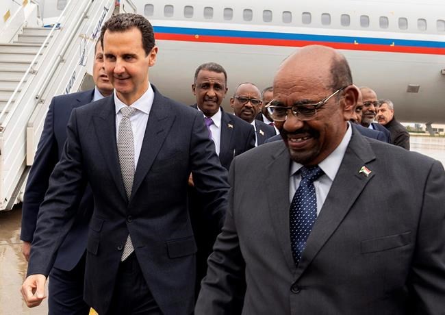 Photographs transmitted by SANA showed the two leaders shaking hands at the airport in front of a Russian plane that appears to have brought al-Bashir to Syria. Russia, a key ally of Assad, maintains an airbase southeast of the Syrian city of Latakia.