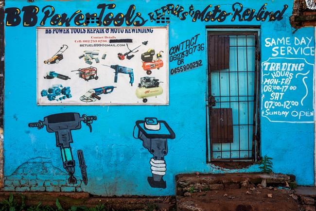 There’s a Solly’s Electronics Store with no sign of Solly, and brightly painted signs with now-empty promises: “U call we deliver.” “Same day service.”