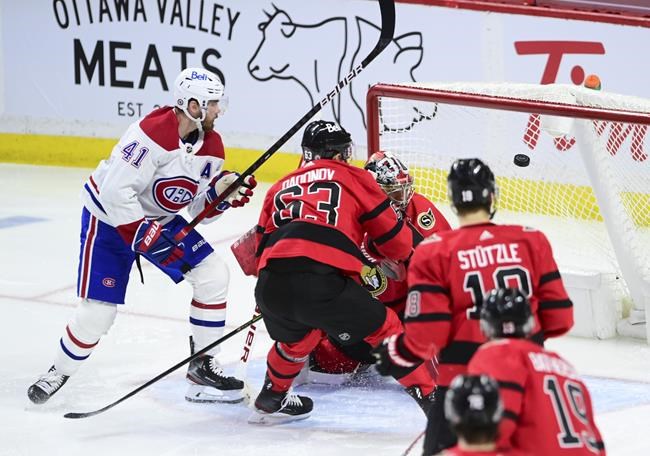 Paul Byron and Corey Perry provided the rest of the offence for Montreal (16-8-9) against the Senators, while Jake Evans added a pair of assists for the first two-point game of his career. Tomas Tatar added two assists of his own as Montreal improved to 7-3-5 under rookie head coach Dominique Ducharme, who replaced Claude Julien on Feb. 24.
