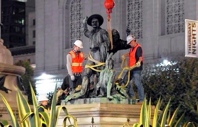 SAN FRANCISCO – A 19th century statue near San Francisco’s City Hall that some said is racist and demeaning to indigenous people was removed early Friday.