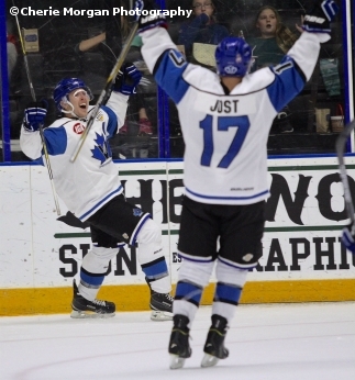 The Vees power-play wasn’t to be upstaged, as Jost completed the natural hat-trick in the opening moments of the third. On a power-play that carried over from the second, the Captain weaved his way into the deep slot and sent a dart to the top corner just twenty-six seconds in; the game all knotted up at threes.